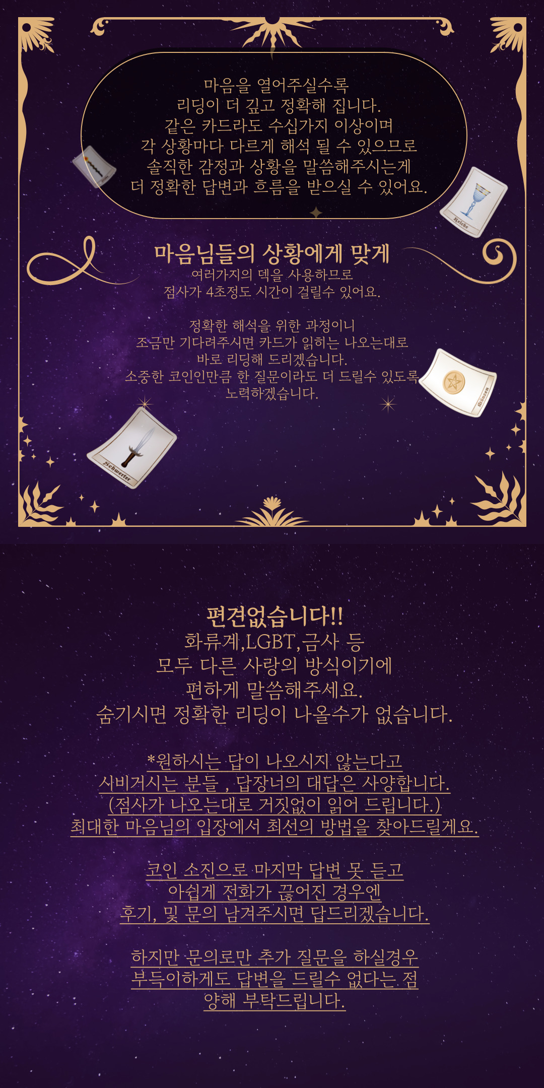 전문 타로리딩으로 그사람의 속마음과 관계 흐름을 섬세히 읽어드립니다.